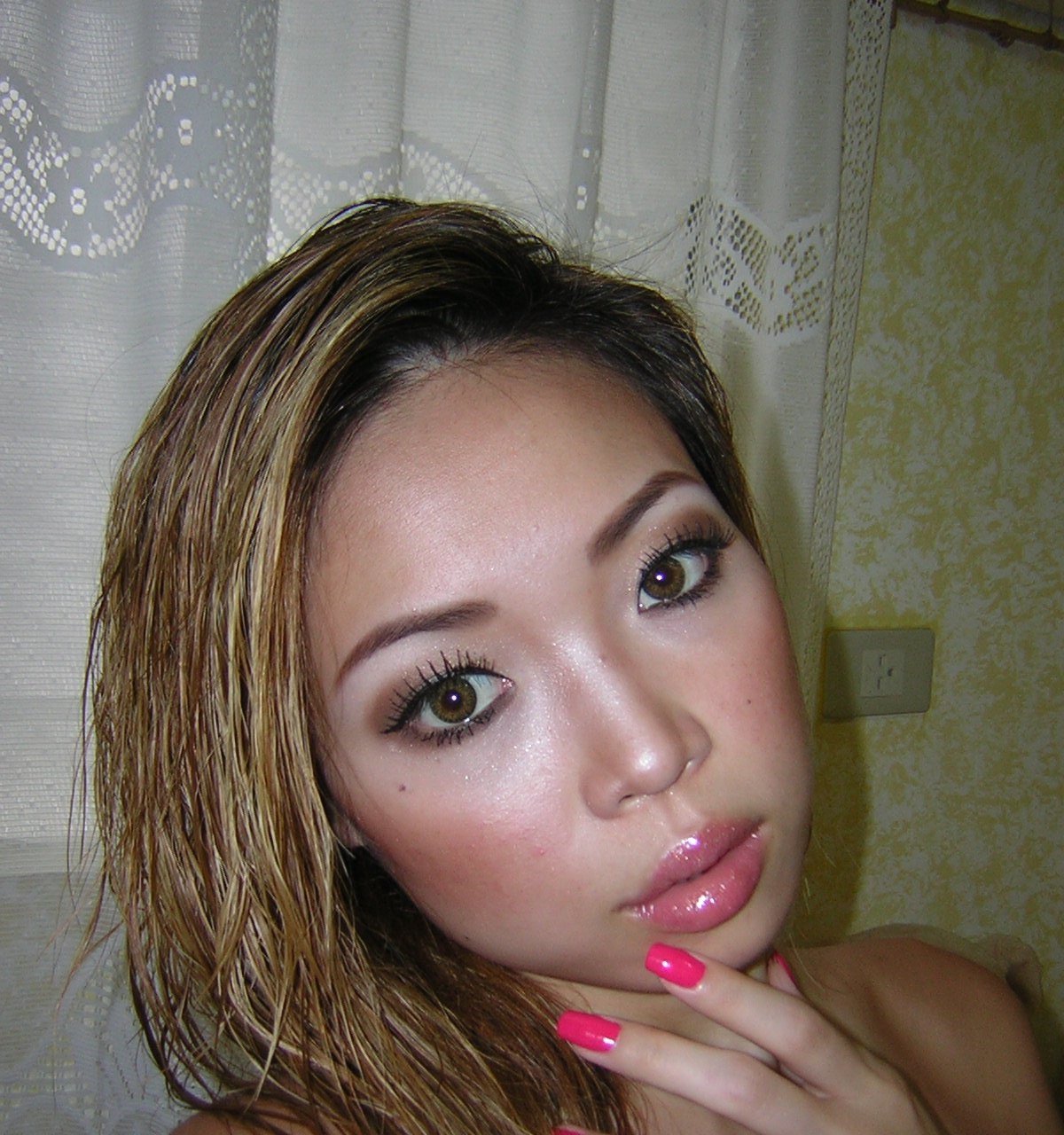 chinese girl posing with her tit in the living booties